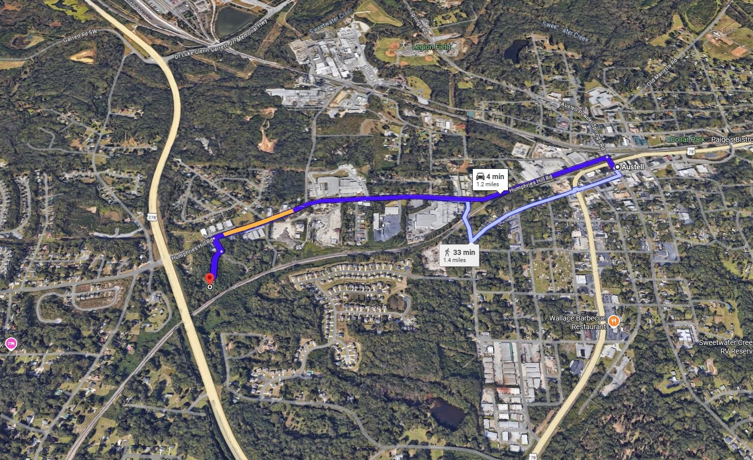 Enjoy the convenience of being within city limits while still having room to spread out. Spend your weekends at nearby Six Flags Over Georgia, or explore the scenic trails and waterfalls at Sweetwater Creek State Park. Travel is simple with Hartsfield-Jackson Atlanta International Airport about 32 minutes away, and the shopping, dining, and entertainment of downtown Atlanta are just 25 minutes away. This well-located property offers the perfect blend of accessibility, recreation, and residential potential.