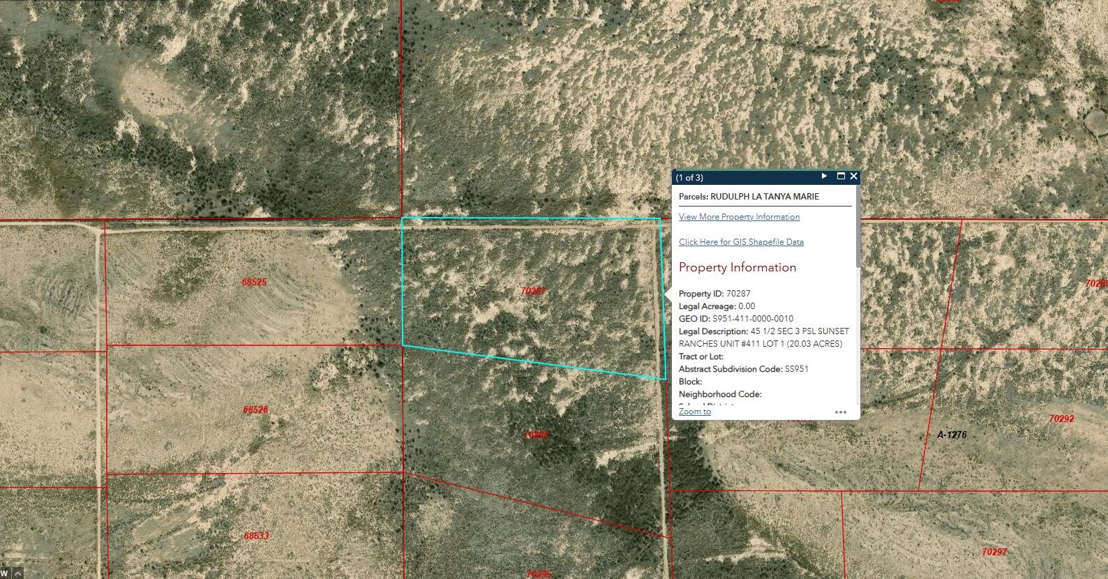 Legal Description: 45 1/2 Sec 3 Psl Sunset Ranches Unit #411 Lot 1 (20.03 Acres)